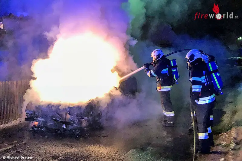 Eine kurze Nacht hatten die Kameraden der Freiw. Feuerwehr Leibnitz-Stadt. Gegen 02:47 Uhr wurde im Dr. Sauerbruch-Weg ein brennendes Fahrzeug gemeldet. Beim Eintreffen der Einsatzkräfte stand der Pkw bereits in Vollbrand.