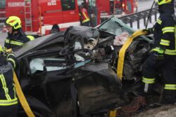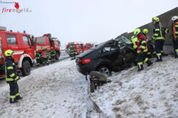 "Wir sind zu einem Verkehrsunfall mit eingeklemmter Person alarmiert worden. Der Beifahrer war eingeklemmt, der Fahrer hat sich befreien können. Beim Beifahrer war der linke Fuß eingeklemmt. Wir haben dann mit Schere und Spreizer die Teile weggebaut, damit wir den Fuß freibekommen haben. Der Pkw ist über eine Böschung, hat die Lärmschutzwand druchbrochen und ist aber auf der Autobahnseite zum Liegen gekommen," berichtet Josef Riedl, Einsatzleiter der Feuerwehr Rutzenmoos.