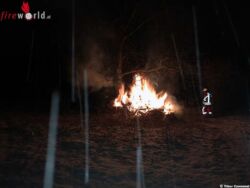 Beim Eintreffen der Einsatzkräfte an dem weithin gut sichtbaren Feuer stellte sich heraus das ein Holzstapel an einem Baum brannte. Mit einem C-Rohr wurde der brennende Holzstapel abgelöscht. Wie es zu dem Brand kam ist noch unbekannt. Die Feuerwehr Bruchsal war unter der Leitung des stellvertretenden Feuerwehrkommandanten Thomas Zöller mit Abteilungskommandant Martin Schleicher, unterstützt von Feuerwehrkommandant Bernd Molitor mit 65 Einsatzkräften bis 21.30 Uhr im Einsatz.