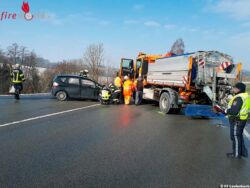 Oö: Verkehrsunfall auf der B137 – Pkw kollidiert mit Streuwagen