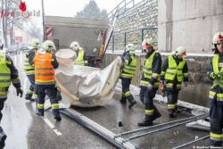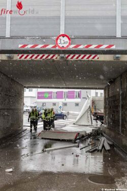 KREMS AN DER DONAU (NÖ): Die Höhe von seinem Fahrzeug hat ein Lkw-Lenker am Nachmittag des 6. März 2018 ein wenig unterschätzt, und fuhr schwungvoll durch die ÖBB-Unterführung in der Kremser Austraße. Dabei wurde der Aufbau vom Motorwagen getrennt und fiel hinter dem Lkw auf die Fahrbahn.
