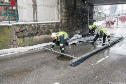 Da die massiven Teile die Fahrbahn blockierten wurde von der Polizeiinspektion Krems die Feuerwehr zur Bergung alarmiert. Ein Fahrzeug der Hauptwache der Feuerwehr Krems, welches sich gerade bei einer Pkw-Bergung auf der B37a befand, rückte von dort zum weiteren Einsatzort in die Austraße ab.