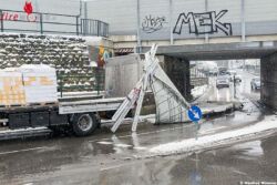Nö: Lkw verliert in einer Unterführung seinen Planenaufbau (+Video)