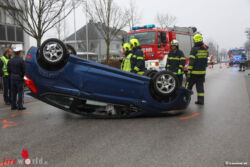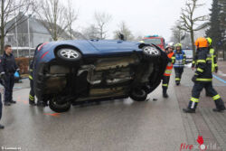 Der Unfall ereignete sich auf der Linzer Straße in Marchtrenk. Unmittelbar vor dem Polizeiposten hat sich nach einer Kollision ein Pkw überschlagen und kam am Dach zum Liegen. Die Einsatzkräfte wurden zu einem Verkehrsunfall mit eingeklemmter Person alarmiert. Beim Eintreffen der Einsatzkräfte waren bereits alle Beteiligten aus den Unfallfahrzeugen befreit. Die Feuerwehr führte die Aufräumarbeiten durch. Eine Person mit leichten Verleztungen wurde vom Rettungsdienst versorgt. Die Linzer Straße war rund eine halbe Stunde für den Verkehr gesperrt.