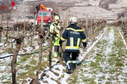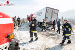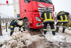 OBERLOIBEN (NÖ): Auf einer Zufahrtsstraße zu einem Weingut in Oberloiben, Gemeinde Dürnstein, rutschte am Vormittag des 7. März 2018 ein Sattelzug in den Straßengraben und konnte nicht mehr vor und zurück. Die von der Bezirksalarmzentrale Krems alarmierte Freiwillige Feuerwehr Dürnstein rückte mit drei Fahrzeugen zur nahe gelegenen Einsatzstelle aus.
