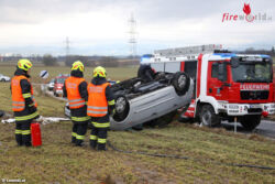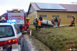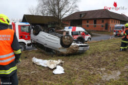 FISCHLHAM (OÖ): Eine verletzte Person forderte Mittwochnachmittag, 7. März 2018, ein Verkehrsunfall auf der Thalheimer Straße in Fischlham (Bezirk Wels-Land). Ein Auto kam von der Fahrbahn ab und überschlug sich in ein angrenzendes Feld.