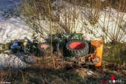 Ein Gemeindetraktor ist bei Streuarbeiten aufgrund Glatteises von der Straße abgekommen und in einen Bach gestürzt. Der Fahrer war noch vor Ort und wurde mit Verletzungen unbestimmten Grades in das LKH Steyr gebracht. Die FF Laussa leuchtete bereits die Einsatzstelle aus und baute eine provisorische Öl Sperre im Bachbett auf, für den Fall das Betriebsmittel auslaufen sollten. Um das Kranfahrzeug in Stellung zu bringen, musste zuvor eine Telefonleitung abgehängt werden.