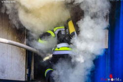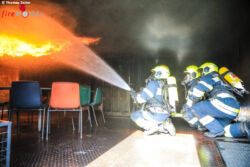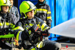 Nach einer kurzen theoretischen Einschulung durch den Bereichsatemschutzbeauftragten des BFV Knittelfeld, Oberbrandinspektor Walter Leitold und Ausbildnern des Landesfeuerwehrverbandes beübten die 45 Mann die verschiedenen Strahlrohrtechniken im Außenbereich. Dannach ging es für die Atemschutztrupps in die Brandübungs- und Simulationsanlage. Wenige Augenblicke nach dem die Türen geschlossen wurden, musste dass zuvor erlernte Wissen in die Tat umgesetzt werden. Gehörig ins Schwitzen geriet dabei jeder einzelne Atemschutzträger während der Brandbekämpfung, denn an der Decke herrschten Temperaturen von rund 700 bis 900 Grad Celsius.