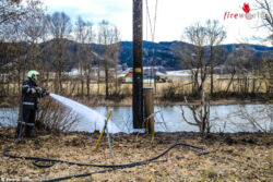 ST. LORENZEN (STMK): Zu einem Brandeinsatz neben der S36 wurden die Feuerwehren St. Lorenzen und St. Margarethen bei Knittelfeld am 12. März 2018 gerufen. Aus nicht näher bekannten Umständen rissen gegen 16:45 Uhr drei Stromseile einer 30 KV Leitung.