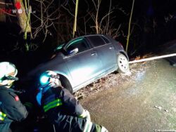 Beim Eintreffen am Einsatzort stellte sich heraus, dass ein Fahrer mit seinem Auto von der Fahrbahn ab kam und auf der steilen Böschung zu stehen kam. Das Auto drohte auf der Böschung umzustürzen und in den darunterliegenden Wald zu fallen.