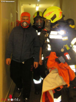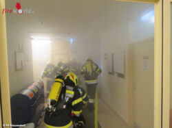Vor Ort zeigte sich, dass dank des besonnenen Vorgehens des Betreuungspersonals bereits rund 100 SchülerInnen ins Freie gebracht worden waren, 19 Personen waren allerdings im dichten Rauch eingeschlossen. Sie warteten dem Aufenthaltskonzept entsprechend in ihren Zimmern und machten sich an den Fenstern bemerkbar. So konnten unter schwerem Atemschutz alle Eingeschlossenen schnell gefunden und entweder mit Fluchthauben über das Stiegenhaus oder mittels Teleskopbühne über die Fenster gerettet werden. Sehr hilfreich war hiebei für die Einsatzkräfte, dass durch die Betreuer am Sammelplatz eine genaue Standeskontrolle vorgenommen worden war und damit Klarheit darüber bestand, welche Personen sich noch im Haus aufhielten.