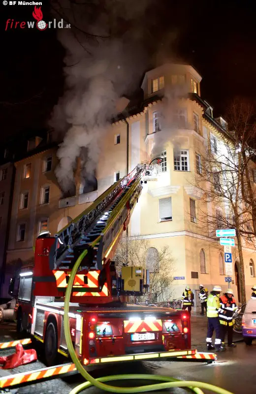 Mehrere Atemschutzträger gingen mit einem C-Rohr über das Treppenhaus zur Brandwohnung vor. Parallel wurde von außen mit einem weiteren C-Rohr ein Flammenüberschlag auf das dritte Obergeschoss verhindert. Da sich auch im Treppenhaus der Brandrauch ausgebreitet hatte, wurden zwei Personen aus dem vierten Obergeschoss mit Hilfe einer Drehleiter gerettet. Der 53-jährige Besitzer der Brandwohnung konnte selbständig das Gebäude verlassen und wurde von der Notarztbesatzung Schwabing versorgt und wegen des Verdachtes einer Rauchgasvergiftung in eine Münchner Klinik transportiert.