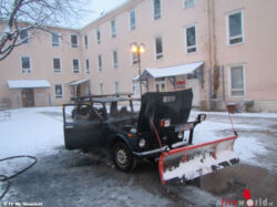 Nach dem Einrücken von der S4 war die Einsatznacht allerdings noch nicht beendet. Aus dem Hof der Musikschule in der Fußgängerzone wurde Rauch aus einem Geländefahrzeug mit Schneepflug gemeldet. Die im Fahrzeug von den technischen Einsätzen immer noch anwesenden Kameraden rückten unverzüglich mit einem Tanklöschfahrzeug aus. Der Innenraum des in Wiener Neustadt Bezirk zugelassenen Lada Taiga stand bereits in Flammen. Die Flammen wurden durch die Feuerwehr Wiener Neustadt kurz nach dem Eintreffen rasch gelöscht, das Fahrzeuginnere allerdings wurde völlig zerstört.
