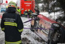 Ein Fahrzeug kam von der Bundesstraße ab und blieb am Dach liegen. Die Lenkerin wurde unbestimmtes Grades verletzt und vom Roten Kreuz übernommen.