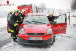 WALLERN (OÖ): Bei überraschend winterlichen Verhältnissen wurde die Feuerwehr Wallern am 18. März 2018, um 9.21 Uhr, zu einer Fahrzeugbergung auf der B134, Höhe Gasverteilstation, alarmiert.