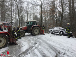 LICHTENBERG (OÖ): Um 07.29 Uhr des 18. März 2018 heulte die Sirene der Freiwilligen Feuerwehr Lichtenberg und die Mitglieder wurden zu einer Fahrzeugbergung auf die Derflerstraße alarmiert.
