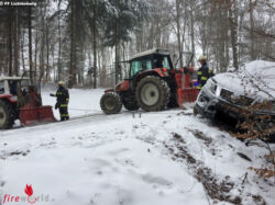 Oö: SUV-Bergung in Lichtenberg mit zwei Traktorseilwinden