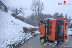 TECHELSBERG AM WÖRTHERSEE (KTN): Zu einem Lkw-Unfall wurden die Freiwilligen Feuerwehren Töschling und Techelsberg um 04.36 Uhr des 19. März 2018 alarmiert. Anlass dafür war ein abgestürztes Winterdienst-Fahrzeug.