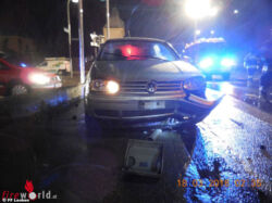 Kaum waren die Einsatzkräfte in die Rüsthäuser zurückgekehrt, wurden sie zu einem Verkehrsunfall auf der B116 im Bereich der Jakobikreuzung gerufen. Ein Pkw geriet auf den Gehsteig und stieß dort gegen eine Fußgängerampel. Die Einsatzstelle wurde abgesichert und ausgeleuchtet, der Pkw dem Abschleppdienst übergeben und die Unfallstelle gesäubert.