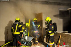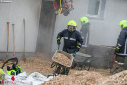 Da auch der Lagerraum für die Hackschnitzel stark verraucht war, musste von einem Brand im unteren Bereich des Hackschnitzelagers ausgegangen werden. Um an den Brandherd zu gelangen, war es nun notwendig, die gesamten Hackschnitzel im Lager (ca. 50-60m³) händisch auszuräumen. Da diese Arbeit nur unter schwerem Atemschutz bei sehr beengenden Platzverhältnissen und bei sehr schlechten Sichtverhältnissen durchgeführt werden können, gestaltete sich dies sehr zeitaufwendig und dauert zur Stunde – 09.45 Uhr – noch an.