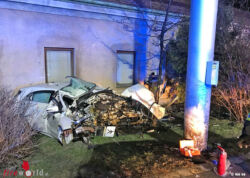 Dabei wurde der Lenker verletzt und wurde zur schonenden Rettung von der Feuerwehr mittels hydraulischer Rettungsgeräte aus dem Fahrzeug befreit. Am Fahrzeug entstand Totalschaden und auch die Hausmauer wurde erheblich beschädigt.