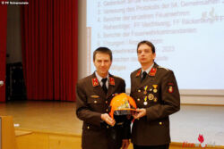 Im Anschluss an die Wahl gaben die neu gewählten Funktionäre eine kurze Laudatio zur durchgeführten Wahl. Die Wachablöse bei der Feuerwehr Viechtwang wurde symbolisch mit der Übergabe des Kommandantenhelms von HBI Paul Länglacher an seinen Stellvertreter OBI Roland Fröch durchgeführt.