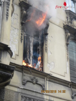GRAZ (STMK): Für viele Notrufe sorgte am Nachmittag des 24. März 2018 ein Brand in einem Gebäude am Stadtpark in Graz. In einer am Wochenende nicht benützten Ordination waren infolge des Brandgeschehens bereits die Fensterscheiben geborsten und dichter Qualm drang in Richtung Glacis.