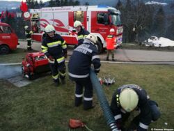 Stmk: Drei Feuerwehren übten gemeinsam bei einem Wirtschaftsgebäude