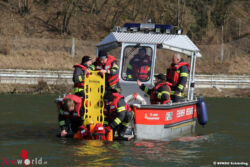 Wegen der großen Zahl an Teilnehmern wurde der Weiterbildungstag im effizienten Stationsbetrieb durchgeführt. „An Land“ wurden dabei der Leinen- und Knotendienst sowie das Beladen und Arbeiten am Boot besprochen und geübt, dem ob der beengten Verhältnisse auf den Booten große Bedeutung zukommt. Auf dem Wasser galt es schließlich verschiedene Einsatzszenarien abzuarbeiten: Das Löschen von Bränden vom Boot aus, das Sondieren der Wassertiefe in Ufernähe, das Aufnehmen und Absetzen von Personen, ein Mann-über-Bord-Manöver, das Schleppen von führerlosen Booten, usw. Am Ende des Weiterbildungstages stand schließlich noch ein Vortrag über einem Bootsunfall auf dem Programm, den ein Teilnehmer selbst miterlebte und der anschaulich verdeutlichte, wie schnell es zu Unfällen auf dem Wasser kommen kann und wie wichtig eine fundierte Ausbildung der Helfer auf dem Wasser ist.