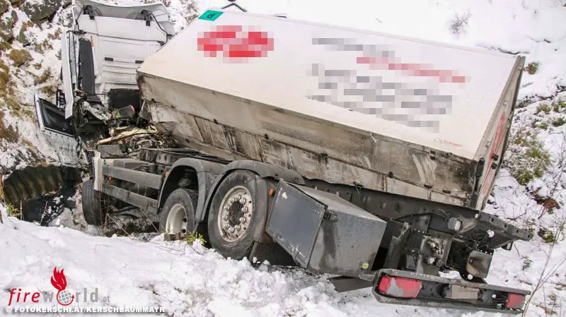 Ein Lastwagen war von der Fahrbahn abgekommen und umgestürzt. Der Lenker musst von den Einsatzkräften aus dem Fahrzeug gerettet werden. Er wurde schwer verletzt in ein Krankenhaus gebracht. Die Bergung wurde mit Unterstützung eines Abschleppunternehmens durchgeführt.