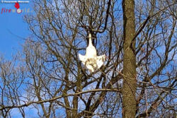 WALSRODE (DEUTSCHLAND): Am 29.03.2018 wurde die Freiwillige Feuerwehr Walsrode um 14:28 Uhr zu einer eher ungewöhnlichen Tierrettung alarmiert. Im Bereich des Helmser Kirchweges hatte sich ein Schwan in einer Astgabel verfangen und kam von selbst nicht mehr frei.
