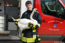 Dieser fällt wenig später den Baum, da dieses die einzige Möglichkeit war, an das Tier heran zu kommen. Im Anschluss brachte die Feuerwehr den verletzten Schwan zu einem Tierarzt und übergab ihn in dessen Obhut.