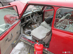 Äußerst kurz gestaltete sich die Anfahrt für die Einsatzkräfte, als man zu einem gemeldeten Fahrzeugbrand am Parkplatz eines Diskonters direkt neben dem Feuerwehrhaus ausgerückt war. Ein abgestellter Kleinwagen hatte im Bereich der Lenksäule zu brennen begonnen, durch ein couragiertes Eingreifen von Ersthelfern konnte jedoch größerer Schaden an dem Wagen verhindert werden.