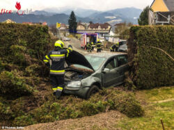 KNITTELFELD (STMK): Zu einer Kollision zwischen zwei Pkw kam es am 29. März 2018 in Knittelfeld. Aus unbekannter Ursache stießen gegen 15:50 Uhr die beiden Fahrzeuge in einem Kreuzungsbereich im Stadtgebiet zusammen, wobei ein Pkw eine Hecke durchstieß und im Garten eines Einfamilienhauses zum Stillstand kam.