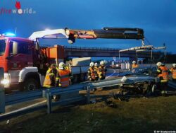 Beim Eintreffen am Einsatzort hatten die Autobahnpolizei und die ASFINAG-Autobahnmeisterei bereits die Unfallstelle abgesichert. Nach kurzem umrangieren auf der Autobahn konnte der schwer beschädigte Unfall-Pkw per Kran aus der Leitschiene gezogen und verladen werden.