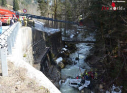 Sbg: 15-Meter-Absturz mit Pkw im freien Fall in reißenden Bach → vier Verletzte in Abtenau