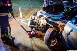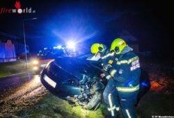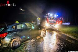 Ein Fahrzeuglenker verlor gegen 20.00 Uhr die Kontrolle über sein Fahrzeug auf der regennassen Fahrbahn und kollidierte mehrmals mit dem Straßengraben und einer Straßenlaterne. Der Pkw kam schlussendlich schwer beschädigt 150m weiter in einem Acker zum Stehen. Der Unfalllenker wurde dabei leicht verletzt, hatte jedoch Glück im Unglück, da er mehrere Bäume am Straßenrand nur knapp verfehlte.