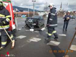 LEOBEN (STMK): Am 31.03.2018 um 14:22 Uhr alarmierte die Bereichsfunkleitstelle Florian Leoben die Freiwilligen Feuerwehren Leoben-Stadt und Leoben-Göß mit dem Alarmstichwort „T10-VU-eingekl“ zu einem Verkehrsunfall mit eingeklemmter Person auf der Tivolikreuzung.