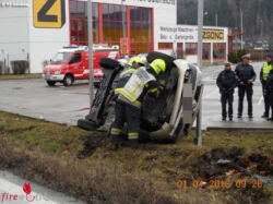 Am 01.04.2018 um 10:01 Uhr wurden die beiden Feuerwehren wieder zu einem Verkehrsunfall mit eingeklemmter Person auf der S6 Abfahrt Leoben-Ost Höhe Kika alarmiert. Die ersteingetroffenen Kräfte konnten rasch die Meldung absetzen, dass keine Person im Fahrzeug eingeklemmt war. Eine verletzte Person wurde vom Notarzt versorgt und anschließend in das LKH Hochsteiermark eingeliefert. Ein Fahrzeug stieß aus unbekannter Ursache in die Leitschiene und kam auf der Seite liegend zum Stehen. Das Fahrzeug wurde mittels Kran des SRF (schweres Rüstfahrzeug) aufgestellt. Nach Abschluss aller notwendigen Arbeiten rückten die Feuerwehren um 11:35 Uhr wieder in die Feuerwehrhäuser ein.
