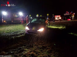 Zwanzig Minuten nach dem Einrücken vom ersten nächtlichen Einsatz auf der A2 folgte die Alarmierung zu einer vermutlichen Menschenrettung am selben Fahrbahnabschnitt. Nachdem sich noch Kameraden im Feuerwehrhaus aufhielten konnte das Vorausfahrzeug unverzüglich ausrücken. Hierbei wurde von den bereits anwesenden Rettungskräften des Roten Kreuzes über Funk gemeldet, dass das Fahrzeug von der Fahrbahn abgekommen und erst in einer Kleingartensiedlung zum Stehen gekommen ist und die Zufahrt daher über die Kleingartensiedlung erfolgen soll. Beim Eintreffen wurde das Fahrzeug ca. 100m von der Autobahn entfernt im Bereich des Zuganges zu einer Gartenhütte vorgefunden. Glücklicherweise blieb der Fahrzeuglenker unverletzt und konnte seinen Pkw selbständig verlassen.