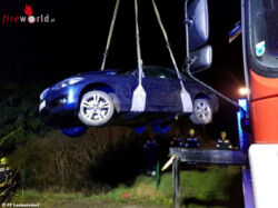 Nach dem Ausleuchten der Einsatzstelle wurde das Fahrzeug mittels Seilwinde zurück auf die Zufahrtsstraße gezogen um es in weiterer Folge mit dem Ladekran des LAST-Fahrzeuges verladen zu können. Nachdem der Pkw gesichert abgestellt wurde, konnte die Einsatzmannschaft diesen Einsatz beenden.