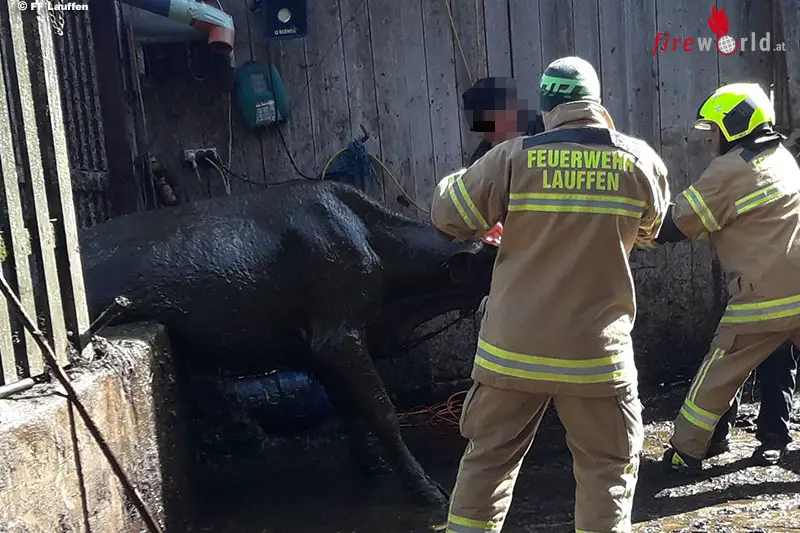 BAD ISCHL (OÖ): In den Vormittagsstunden des 02.04.2018 wurde die Freiwillige Feuerwehr Lauffen zu einer Tierrettung von der Landeswarnzentrale alarmiert. Bei einem nahegelegenen Bauernhof fiel eine Kuh in die Güllegrube und konnte von den Besitzern nicht befreit werden.