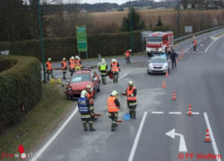 WOLFERN (ÖÖ): Die Freiwillige Feuerwehr Wolfern wurde am Karsamstag, 31. März 2018, um 12:32 Uhr mit dem Einsatzstichwort „Ölspur, Ölaustritt“ alarmiert. Den Informationen der Landeswarnzentrale konnten die Feuerwehrmänner entnehmen, dass es sich um Nacharbeiten eines Verkehrsunfalles mit zwei beteiligten Fahrzeugen handelt.
