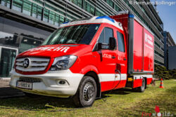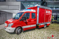 Das Kleinlöschfahrzeug-Logistik selbst ist inzwischen nicht mehr außergewöhnlich, doch aber, dass es rein auf Elektroantrieb (120 kW) setzt. Die Reichweite soll den Angaben zufolge bis 160 km betragen und die Ladezeit im Optimalfall rund eineinhalb Stunden betragen. Aufgebaut wurde das KLF-Logistik von Rosenbauer in Zusammenarbeit mit der Firma Kreisel GmbH & Co. KG. Der Akku wiegt übrigens 620 kg.