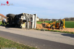 Oö: Anhänger mit Hackschnitzel in Goldwörth umgestürzt