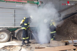 Beim Eintreffen der Feuerwehren Lacken und Herzogsdorf, hatte er den Brand bereits stark eingrenzen können. Die Männer der FF Lacken mit Einsatzleiter Josef Limberger löschten den noch bestehenden Brand mit einem HD-Rohr ab. Im Anschluss wurde die Schredder-Maschine und ihre Umgebung noch mit der Wärmebildkamera nach Glutnestern abgesucht. In diesem Bereich werden größere Mengen an Holz-Abfällen gelagert.