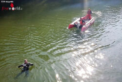 Gegen 15:00 rückte der Wasserzug mit dem Rüstfahrzeug aus und transportierte das motorisierte Schlauchboot zum Museum Arbeitswelt. Nach dem Wassern des Bootes begaben sich die Kameraden zum Museumssteg und bereiteten die Bergung vor. Mittels Leinensicherung konnte das Kennzeichen schließlich von einem (mit Neoprenanzug bekleideten) Kameraden geborgen und anschließend der Polizei Steyr übergeben werden. Um 17:00 konnte der Wasserzug den Einsatz erfolgreich beenden und wieder einrücken.