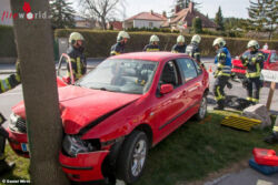 Beim Eintreffen der Feuerwehr Bad Vöslau sicherte die Exekutive bereits die Unfallstelle ab. Der Gruppenkommandant des Rüstfahrzeuges ließ einen Brandschutz aufbauen und die Unfallstelle weiter absichern. Beim Erkunden stellte er fest, dass die Lenkerin, des gegen den Baum geprallten PKW noch im Fahrzeug saß und über Schmerzen klagte. Da der Rettungsdienst noch auf der Anfahrt zur Unfallstelle war übernahmen sofort zwei Rettungssanitäter der Feuerwehr die Erstversorgung der Lenkerin.