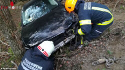 MARIA NEUSTIFT (OÖ): Am 10. April 2018 wurde die Feuerwehr Moosgraben um 06:14 Uhr zu einem Einsatz mit dem Alarmtext „Verkehrsunfall Aufräumarbeiten Pkw im Wald“ alarmiert. Umgehend rückten 10 Kameraden Richtung Einsatzort auf der L557 aus, der nur wenige Hundert Meter vom Feuerwehrhaus entfernt war.