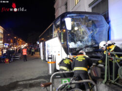 Die verletzte Passantin meldete sich im Laufe des Einsatzes und wurde von der Berufsrettung Wien notfallmedizinisch versorgt. Der havarierte Bus wurde von den alarmierten Feuerwehrleuten zunächst gegen Wegrollen gesichert. Teile eines Metallgeländers steckten in der Front des Busses und wurden mit einem Trennschleifer abgeschnitten, ebenso die Reste eines Zeitungsständers.